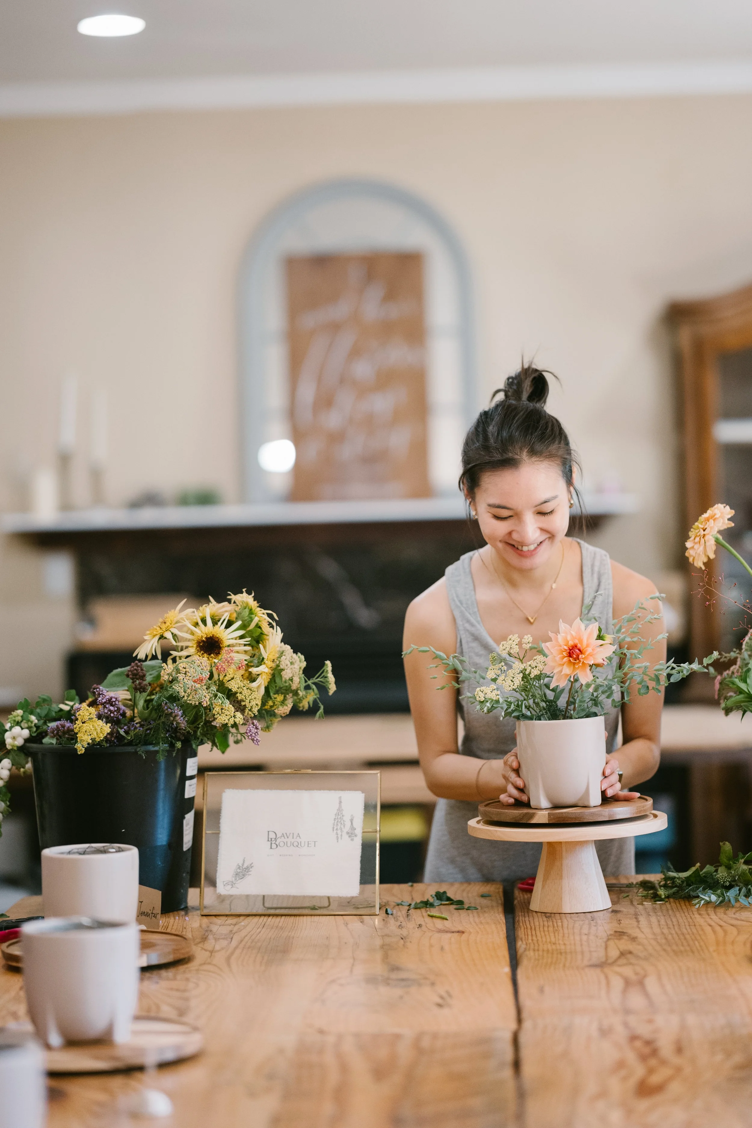 Founded by floral artist Sylvia in 2018, Davia Bouquet brings a poetic touch to everyday blooms. Since the pandemic, she has been hosting her signature flower classes in the Bay Area, inviting people to slow down and enjoy the quiet beauty of nature. Known for her distinctive style and thoughtful teaching, Sylvia has guided and inspired over a hundred students on their floral journeys.
